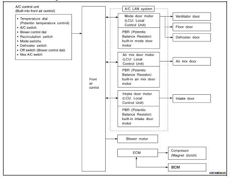 The LAN (Local Area Network) system consists of front air control, mode door motor, air mix door motor and intake door motor.