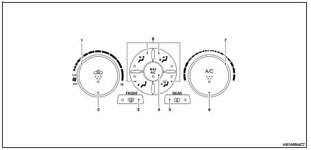 (Pressing the A/C switch when the A/C switch is ON will turn OFF the A/C switch and compressor.)