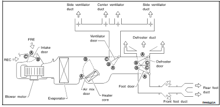 ADDRESS: • Data sent from the front air control are selected according to data-based decisions made by the mode door motor, air mix door motors and intake door motor.