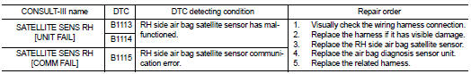Nissan Altima (L32) 2007-2012 Service Manual: B1113 – B1115 satellite sensor RH