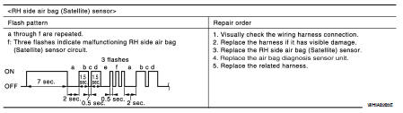 Replace the RH side air bag satellite sensor. Refer to SR-15, "Removal and Installation".