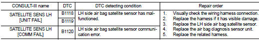 Nissan Altima (L32) 2007-2012 Service Manual: B1118 – B1120 satellite sensor LH