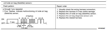 Replace the LH side air bag satellite sensor. Refer to SR-15, "Removal and Installation".