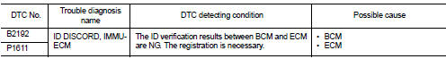 Nissan Altima (L32) 2007-2012 Service Manual: B2192, P1611 ID discord, IMMU-ECM