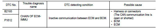 Nissan Altima (L32) 2007-2012 Service Manual: B2193, P1612 chain of ECM-IMMU