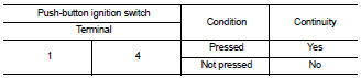 3. Check continuity between push-button ignition switch terminals under the following conditions.