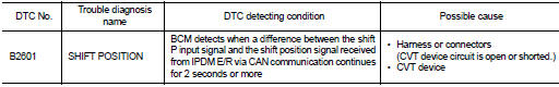Nissan Altima (L32) 2007-2012 Service Manual: B2601 shift position