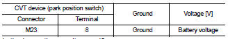 3. Check voltage between CVT device (park position switch) harness connector and ground.