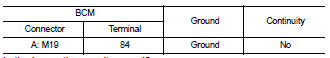 3. Check continuity between BCM harness connector M19 (A) terminal 84 and ground.