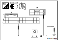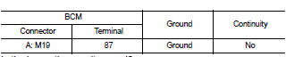 3. Check continuity between BCM harness connector M19 (A) terminal 87 and ground.