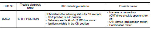Nissan Altima (L32) 2007-2012 Service Manual: B2602 shift position