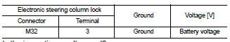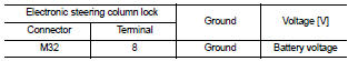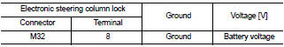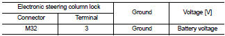 3. Check voltage between electronic steering column lock harness connector and ground.