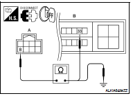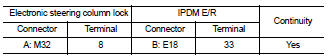 1. Check continuity between electronic steering column lock harness connector M32 (A) terminal 8 and IPDM E/R harness connector E18 (B) terminal 33.