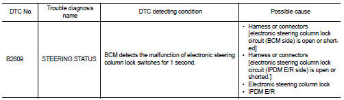 Nissan Altima (L32) 2007-2012 Service Manual: B2609 steering status
