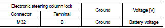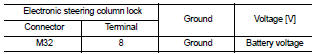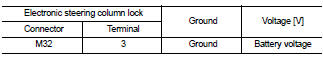 3. Check voltage between electronic steering column lock harness connector and ground.