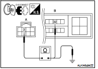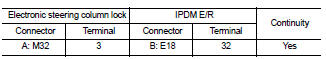 1. Check continuity between electronic steering column lock harness connector M32 (A) terminal 3 and IPDM E/R harness connector E18 (B) terminal 32.