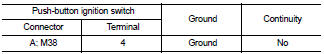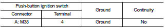 3. Check continuity between push-button ignition switch harness connector M38 (A) terminal 4 and ground.