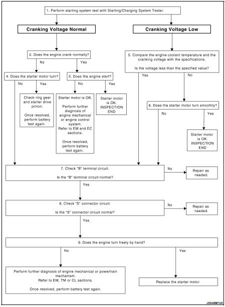 Does the engine start? YES >> Starter motor is OK. Inspection end.