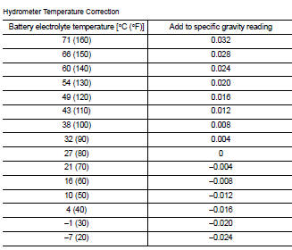 2. Use the chart below to correct your hydrometer reading according to electrolyte temperature.