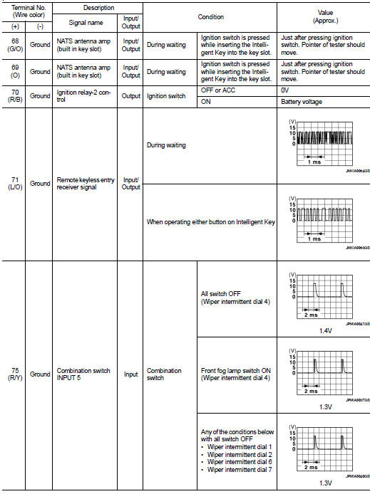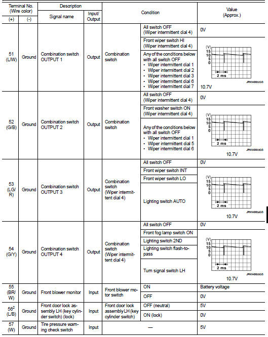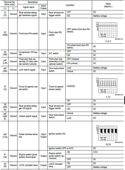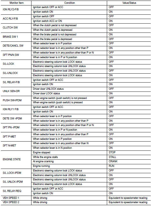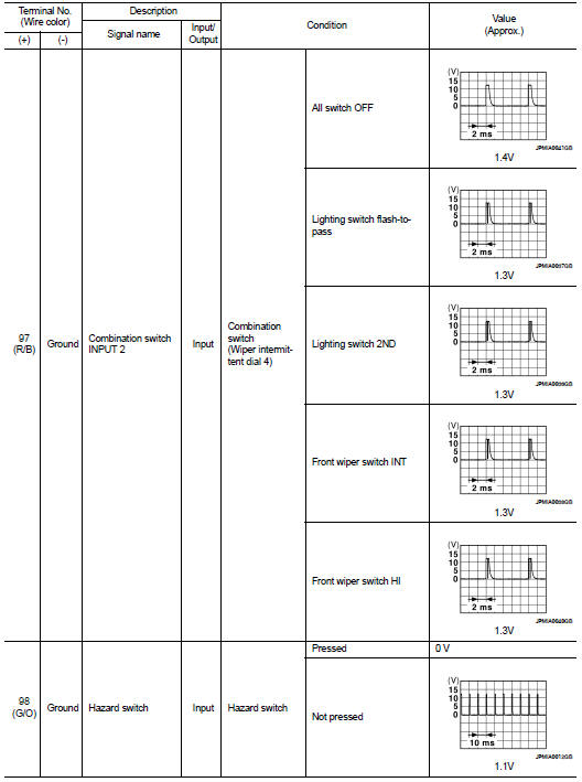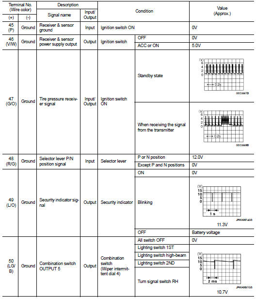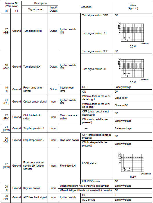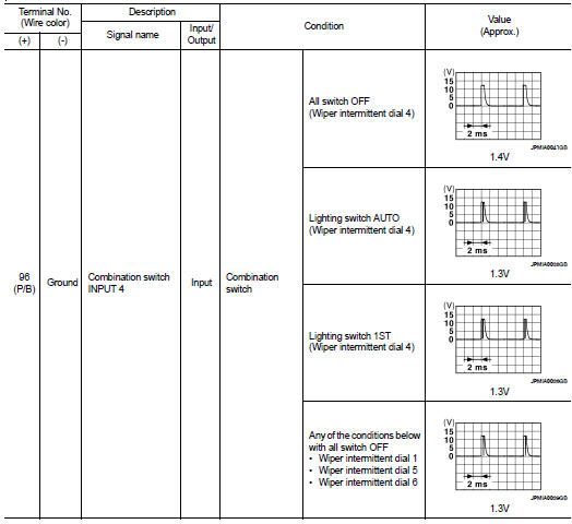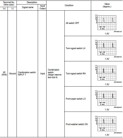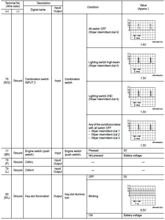 • 1 - 39: Displayed if any previous malfunction is present when current condition is normal. It increases like 1 → 2 → 3...38 → 39 after returning to the normal condition whenever ignition switch OFF → ON. The counter remains at 39 even if the number of cycles exceeds it. It is counted from 1 again when turning ignition switch OFF → ON after returning to the normal condition if the malfunction is detected again.