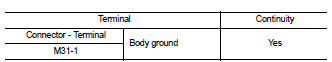 3. Check continuity between blower motor harness connector M31 terminal 1 and ground.