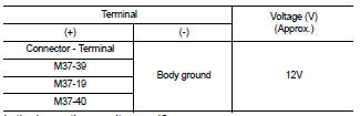 2. Check voltage between front air control harness connector M37 terminals 39, 19, 40 and ground.