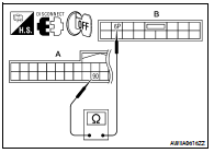 2. Check continuity between blower motor harness connector M31 (A) terminal 3 and front air control harness connector M37 (B) terminal 1.