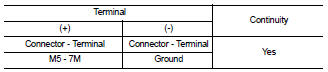 3. Check continuity between fuse block (J/B) harness connector M5 terminal 7M and ground.