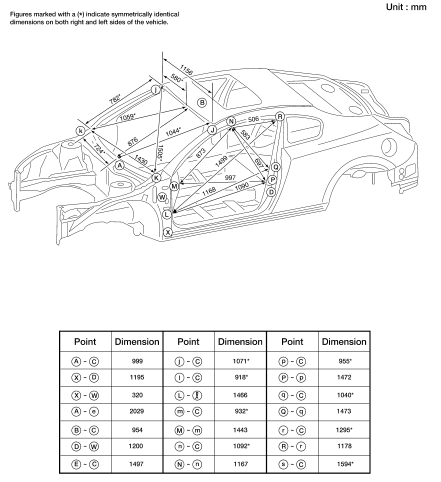 • An asterisk (*) following the value at the measuring point indicates that the measuring point on the other side is symmetrically the same value.