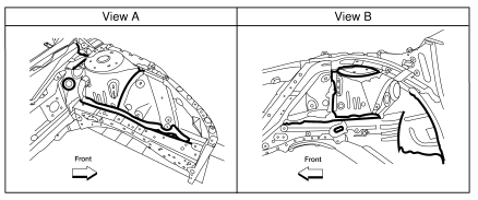 The following figure shows the areas which are sealed at the factory. Sealant which has been applied to these areas should be smooth and free from cuts or gaps. Care should be taken not to apply an excess amount of sealant and not to allow other unaffected parts to come into contact with the sealant.