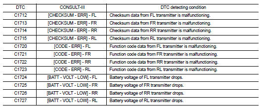 Nissan Altima (L32) 2007-2012 Service Manual: C1712 - C1715, C1720 - C1723, C1724 -C1727 Transmitter malfunction