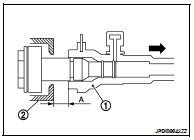 2. Slide the bleeding connector (1) away from the transaxle housing (2) to the specified distance (A) to allow air to bleed from the clutch system.