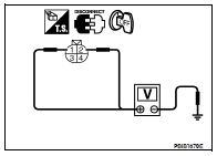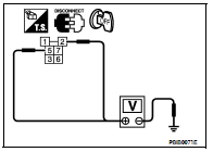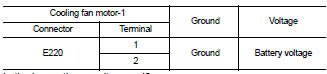 2. Check the voltage between cooling fan motor-1 harness connector and ground.