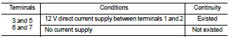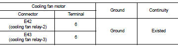 2. Check continuity between cooling fan relay -2, -3 terminals under the following conditions.