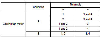 3. Supply cooling fan motor terminals with battery voltage and check operation.