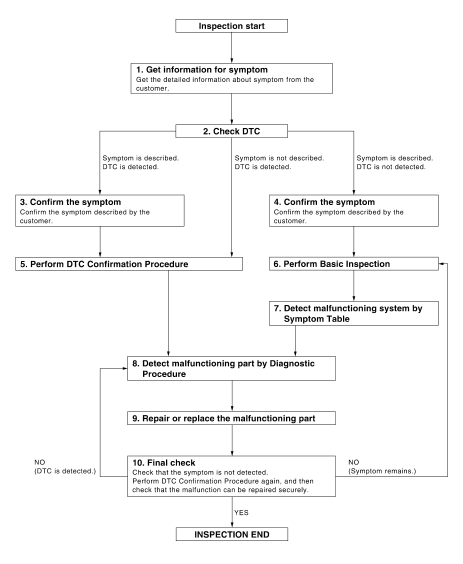 - Study the relationship between the cause detected by DTC and the symptom described by the customer.
