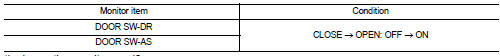 Check door switches DOOR SW-DR, DOOR SW-AS in Data Monitor mode with CONSULT-III.