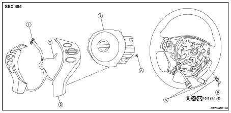6. Remove the steering switch screws (RH/LH) (A), then remove the steering switches from driver air bag module.