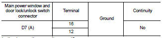 4. Check continuity between main power window and door lock/unlock switch connector (A) and ground.