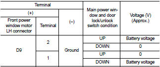 Does front power window motor LH operate with the main power window and door lock/unlock switch? Is the inspection result normal? YES >> Front power window motor LH is OK.
