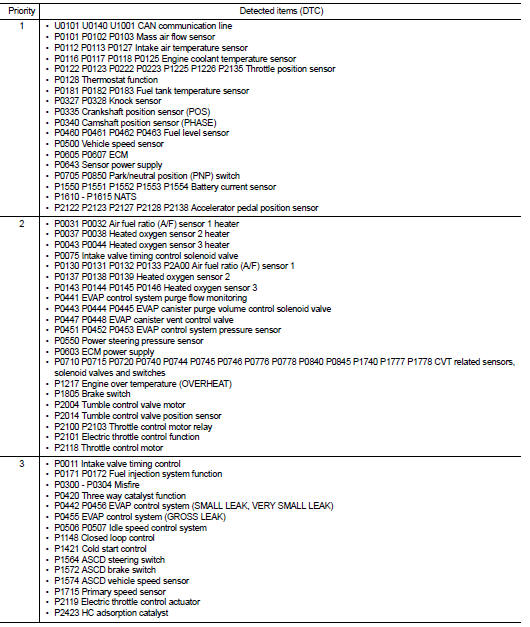 If some DTCs are displayed at the same time, perform inspections one by one based on the following priority chart.