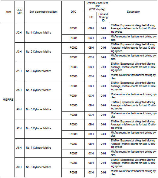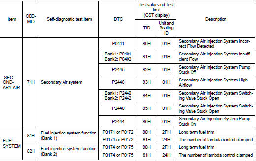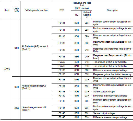 These data (test value and test limit) are specified by On Board Monitor ID(OBDMID), Test ID (TID), Unit and Scaling ID and can be displayed on the GST screen.