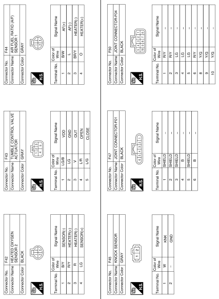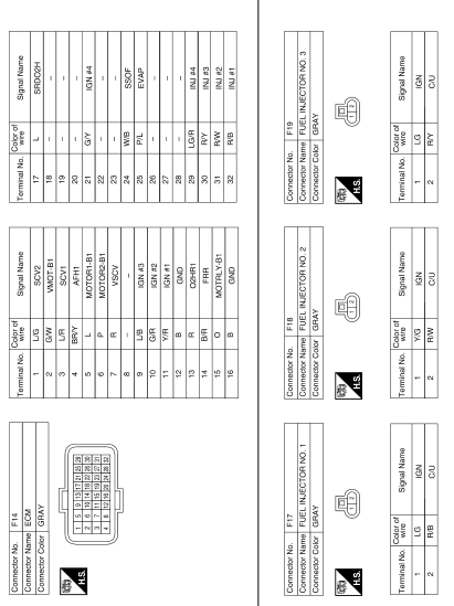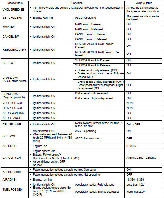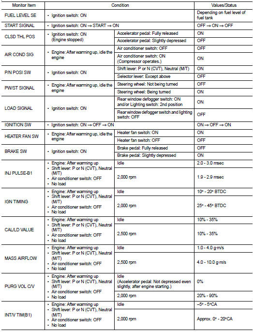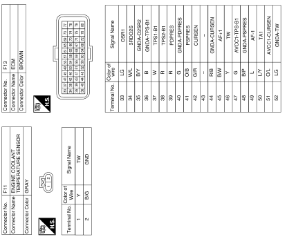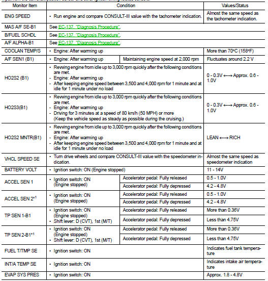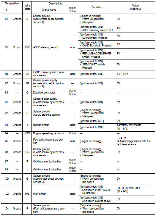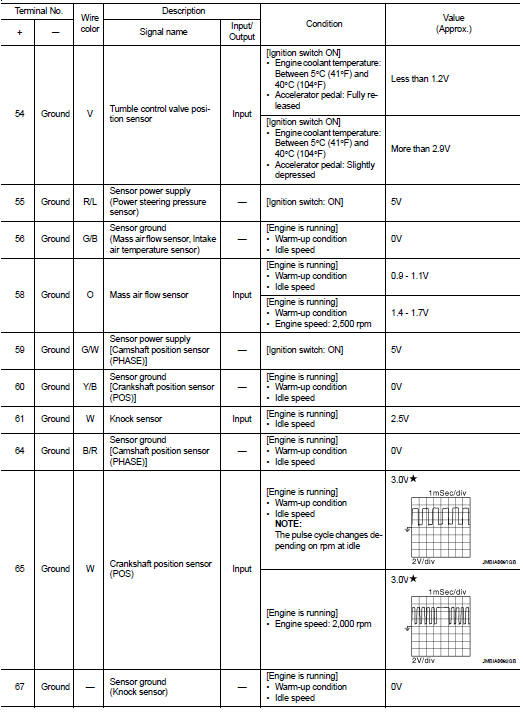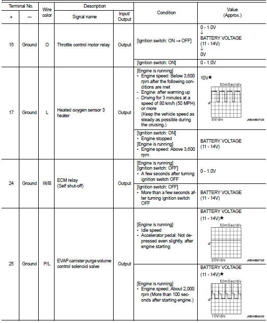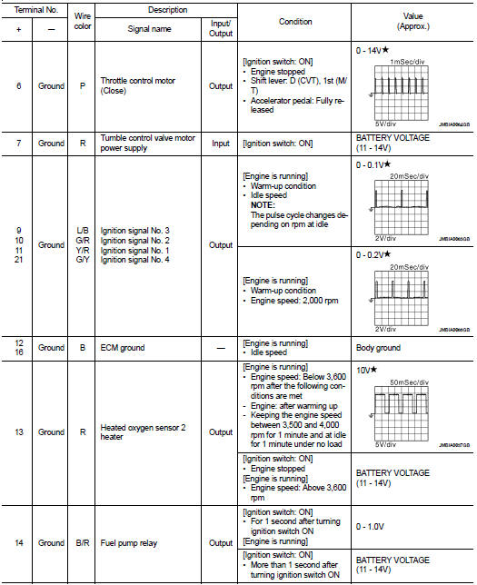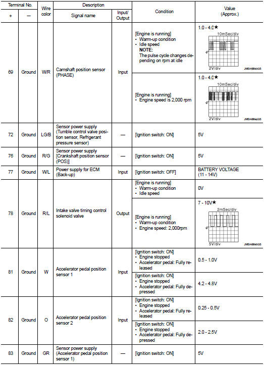 *1: Accelerator pedal position sensor 2 signal and throttle position sensor 2 signal are converted by ECM internally. Thus, they differ from ECM terminals voltage signal.