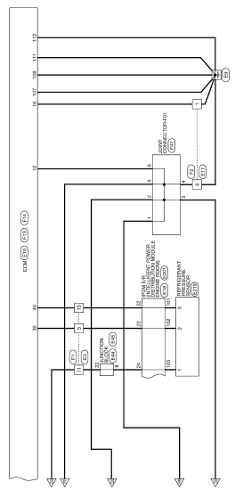 CAUTION: Do not use ECM ground terminals when measuring input/output voltage. Doing so may result in damage to the ECMs transistor. Use a ground other than ECM terminals, such as the ground.