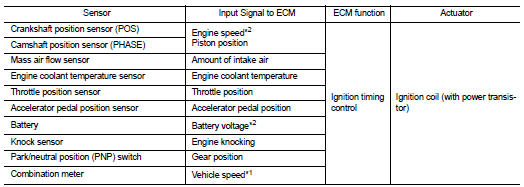 The ECM receives information such as the injection pulse width and camshaft position sensor (PHASE) signal.