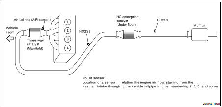 3. Heated oxygen sensor 2 (This illustration is a view from under vehicle.)