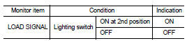 3. Select “LOAD SIGNAL” and check indication under the following conditions.