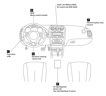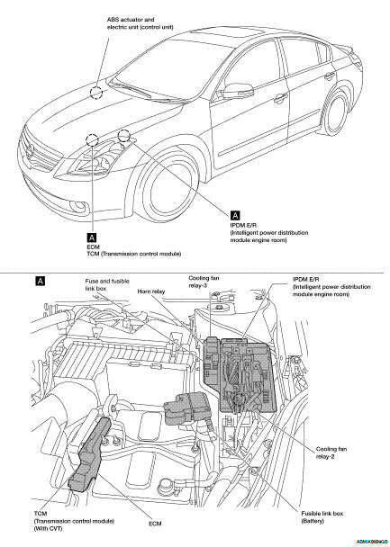 Nissan Altima (L32) 2007-2012 Service Manual: Electrical units location