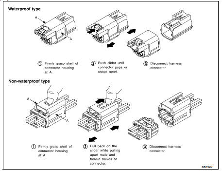 CAUTION: • Do not pull the harness or wires when disconnecting the connector.