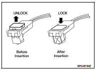 • Always confirm the lever is fully released (loosened) before attempting to disconnect or connect these connectors to avoid damage to the connector housing or terminals.